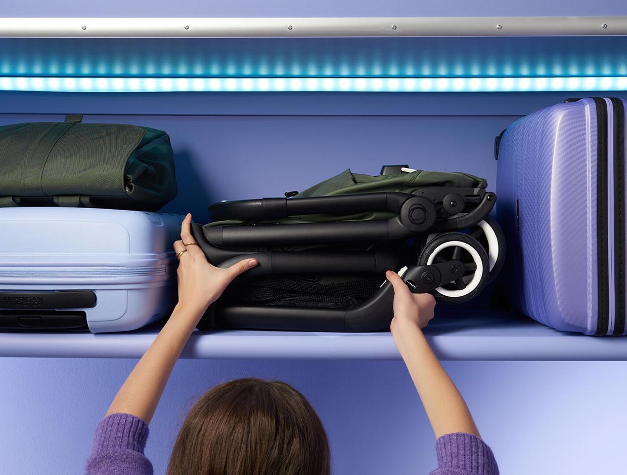 Ultra compact fold (IATA compatible) to store in overhead compartments, car trunks or small corridors