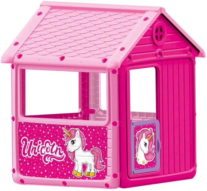 Move into a magical new home with the My First Unicorn House from Dolu. This Unicorn House is so enchanting! It comes in a bright pink colour, with a pastel pink tile-effect roof. There are cute unicorn stickers on the front, as well as two doors and big windows.