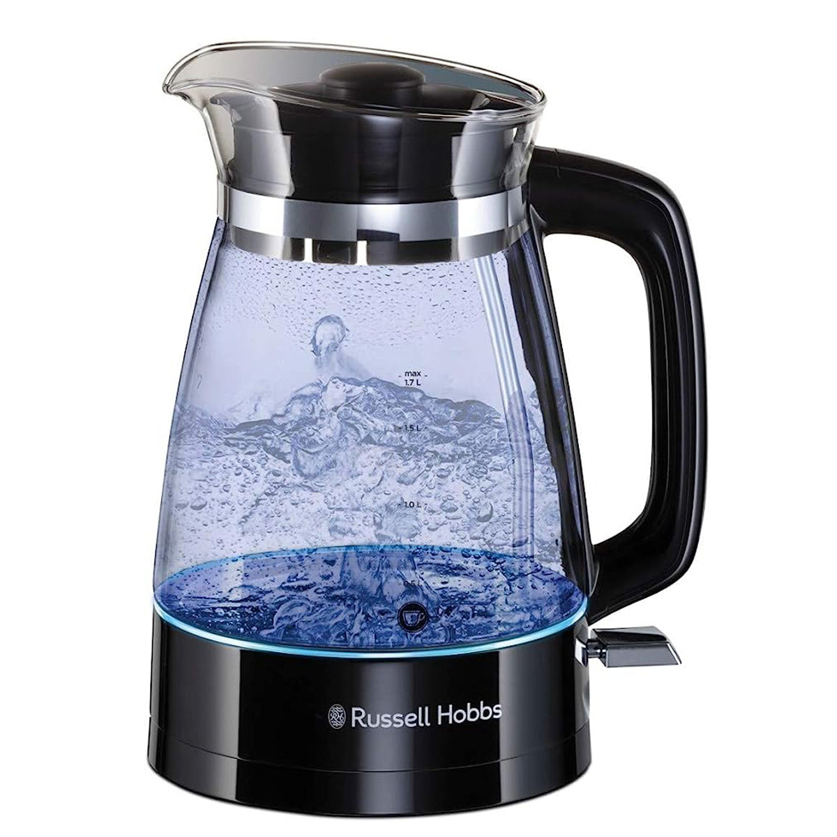 Looking for a stylish kettle to complement your kitchen that’s still affordable? Then look no further than the Russell Hobbs26080-70 Classic Glass Kettlethat will make you feel right at home. Its distinctive Artisan Inspired Design and distinctive Glass Jug Shape and Spout, adds an eye-catching touch in any kitchen. With a 1.7L Capacity, it caters for everyone - and you can enjoy the calming Blue Internal Illumination as you await your cup of tea. Distinctive Glass Design - Add a stylish touch to your kitchen with the Classic Glass Kettle. With a distinctive oblique glass cut and a distinctive Glass Spout, this Carafe-Inspired Style will most definitely stand out on your counter. With Black Plastic and Stainless Steel Accents, the colour scheme will look great in any kitchen.
