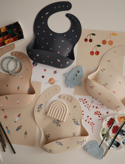 Keep your little one feeling comfy and clean with our fun-loving collection of silicone bibs. Designed in Sweden, mushie bibs feature classic patterns capturing a look that's both timeless and elegant.