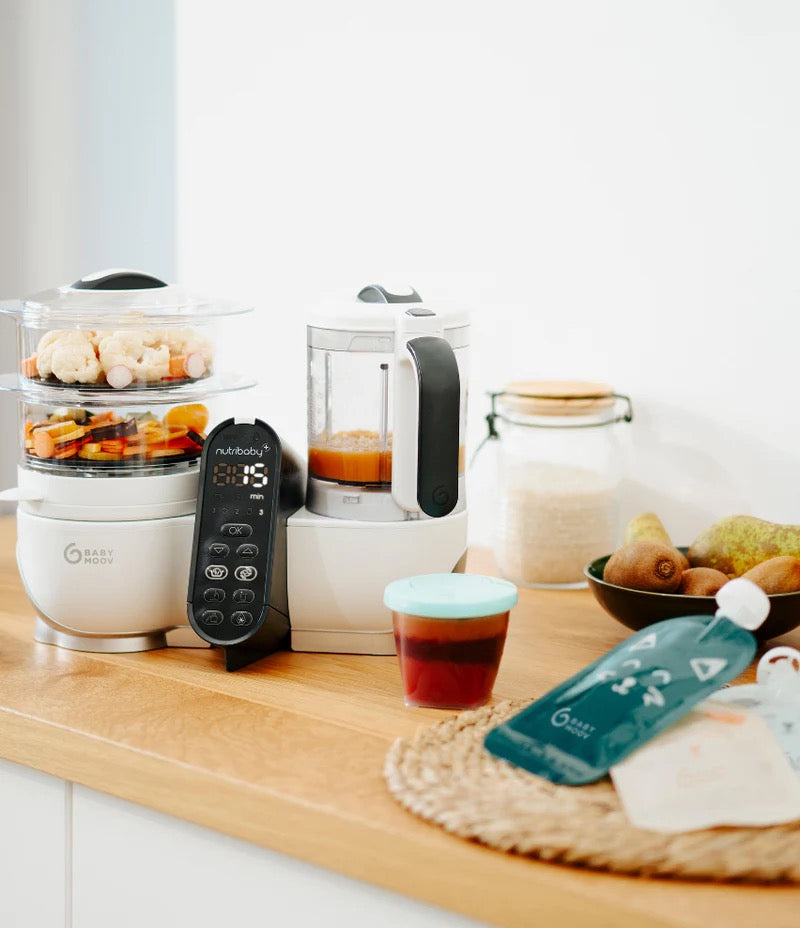 - 6-in-1 multi-purpose baby food maker: steam cooking, blending, defrosting, sterilising and heating baby bottles/ baby food jars