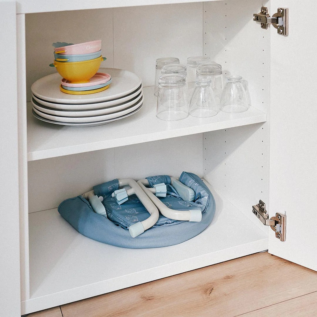 The Badabulle Table Seat is a comfortable, wraparound seat with a 3-point harness. It is easy to set up and fixes onto your table securely with its 4-arm attachment system that fits most tables (from 20 mm to 53 mm maximum). For more comfort, it can be adjusted to 3 different heights. The hook-on high chair is really practical for mealtimes at home or out and about. It folds and unfolds easily so you can take it anywhere with you: when travelling, eating at a restaurant, or visiting friends or family.