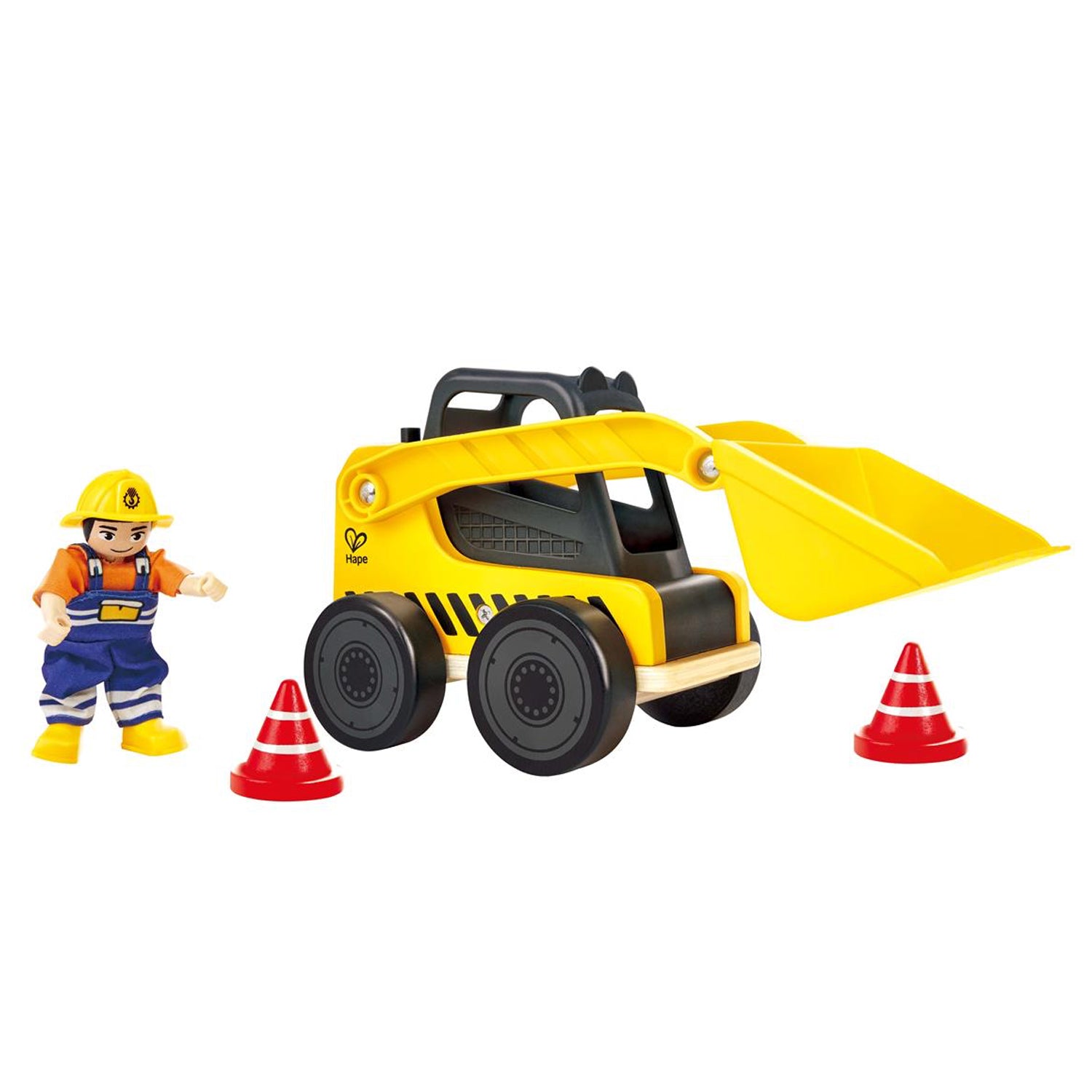 A sturdy wooden loading truck designed for children aged 3 and up, inspired by real-life transport and construction vehicles. It features a liftable cargo bed for dumping loads, smooth-rolling wheels, and a realistic design with bright colors. This toy promotes imaginative role play, gross motor skill development, and understanding of vehicle functions. Perfect for solo play or as part of a larger Hape construction set.