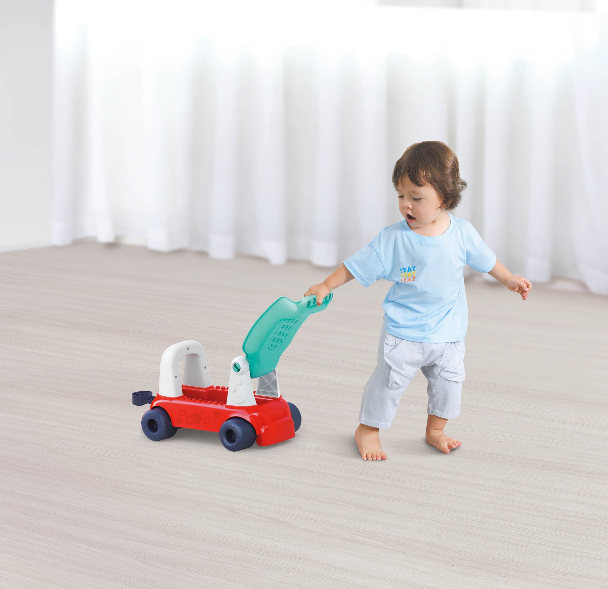 The Hola 4-in-1 Push Walker & Ride-on Learning Train is a multifunctional toy that grows with your child. It can be used in 4 different ways: ride-on, walker, pull-along wagon, and floor play. The toy offers a variety of games, including various sounds, music, and lights, to stimulate learning and imagination