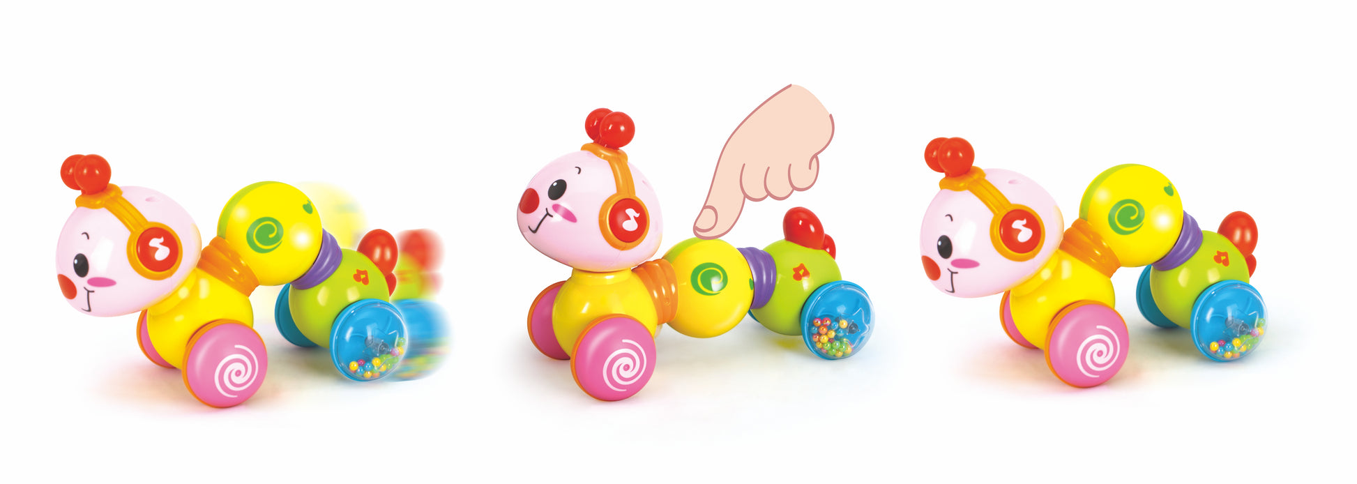 What sets the Hola worm apart from other crawl toys on the market is that this crawling toy requires your child to give it a little push when they want it to move. Your child will learn about cause and effect while simultaneously developing cognitive skills, motor skills, hand-eye coordination and sensory skills.