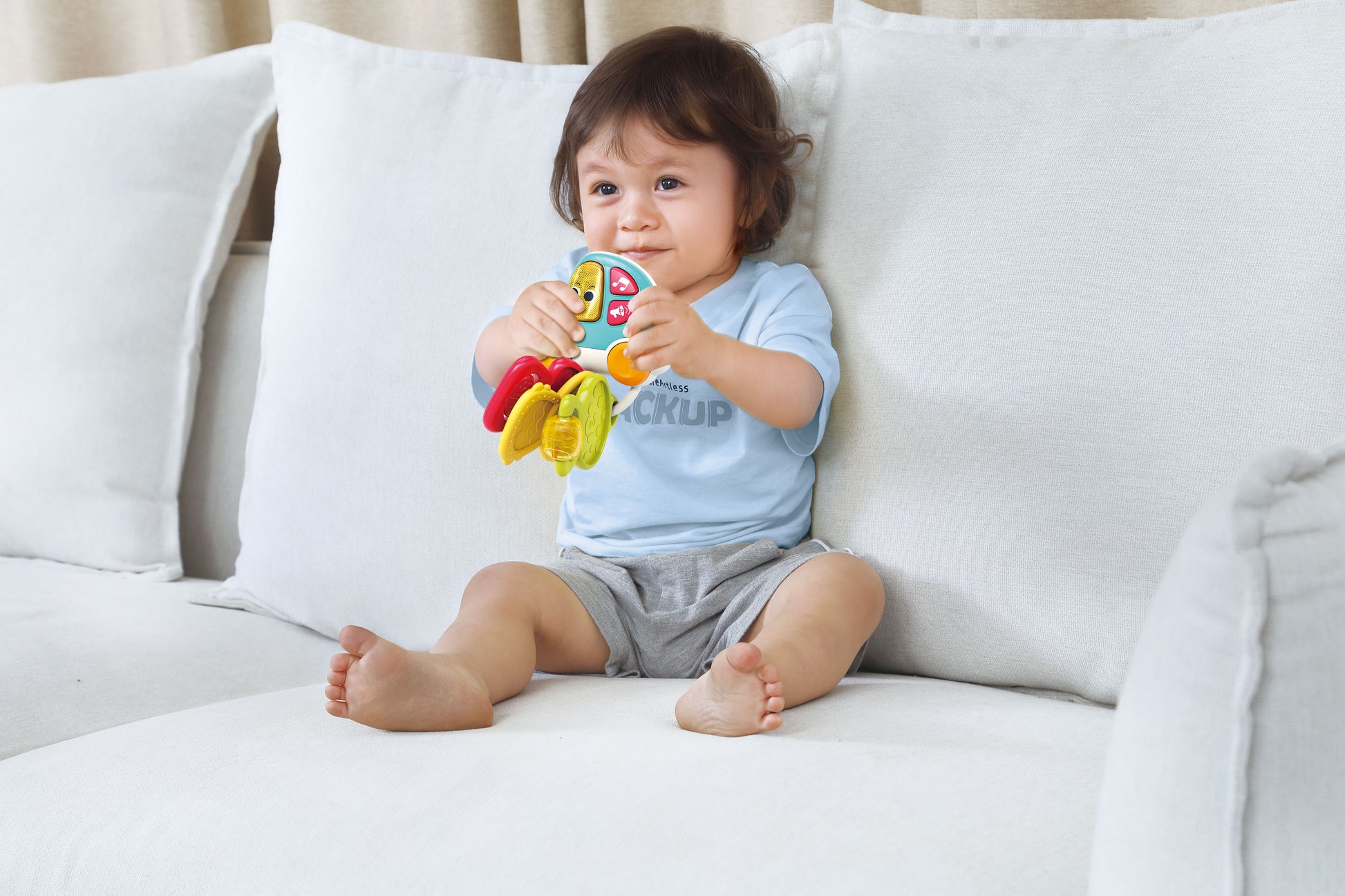 The HOLA Musical Car Keychain is a fun and interactive toy designed for young children. It features colorful buttons, playful sounds, and light effects that help develop sensory skills, hand-eye coordination, and early learning. Perfect for imaginative play and on-the-go fun.