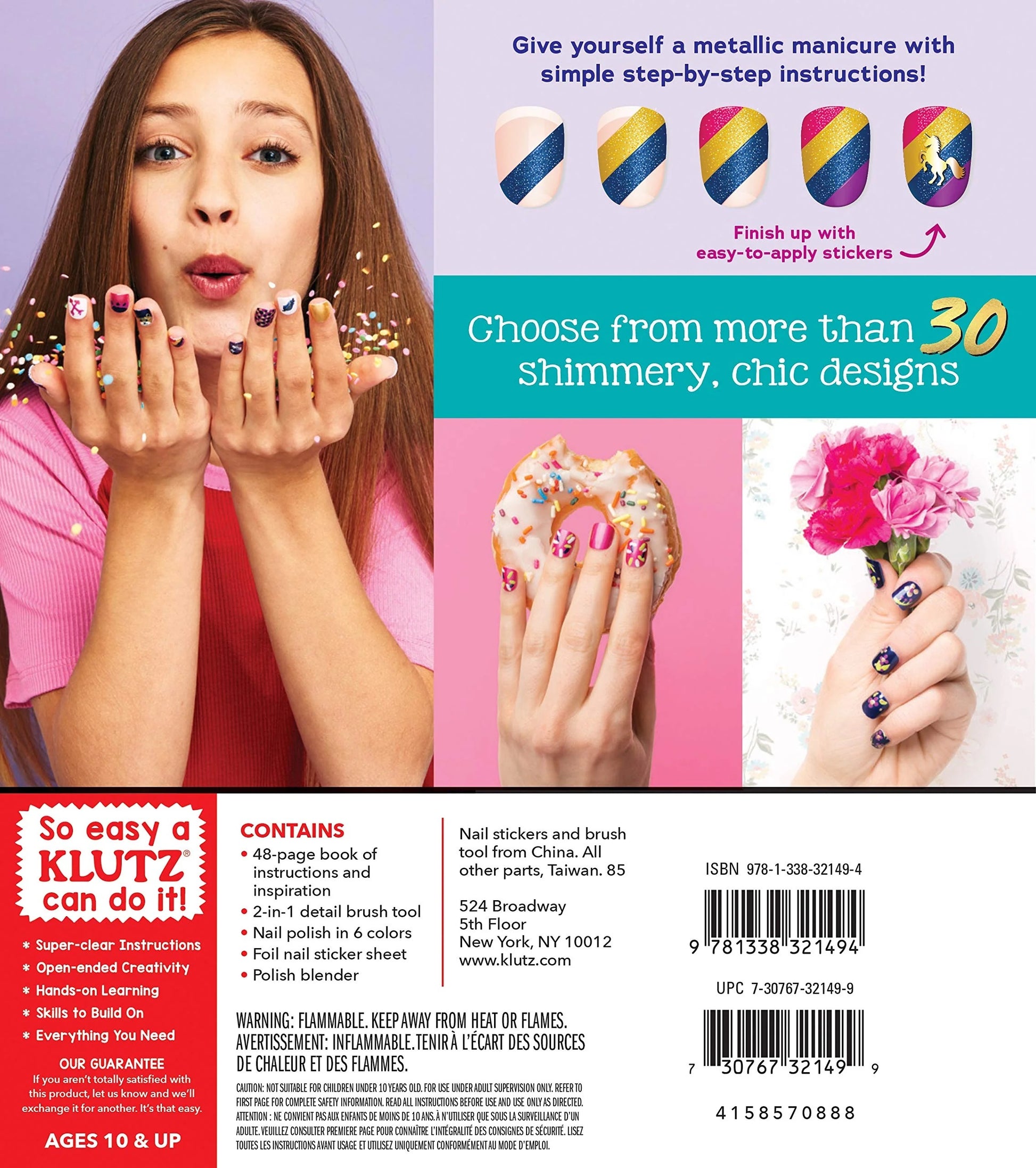 باستخدام الأداة المخصصة ذات الوجهين والملصقات الفضية، ستتعلمين كيفية "تزيين" أظافرك بأكثر من 30 تصميمًا مختلفًا من فن الأظافر، مثل سحر وحيد القرن وعلامات الأبراج وقشور حورية البحر المذهلة والمزيد!