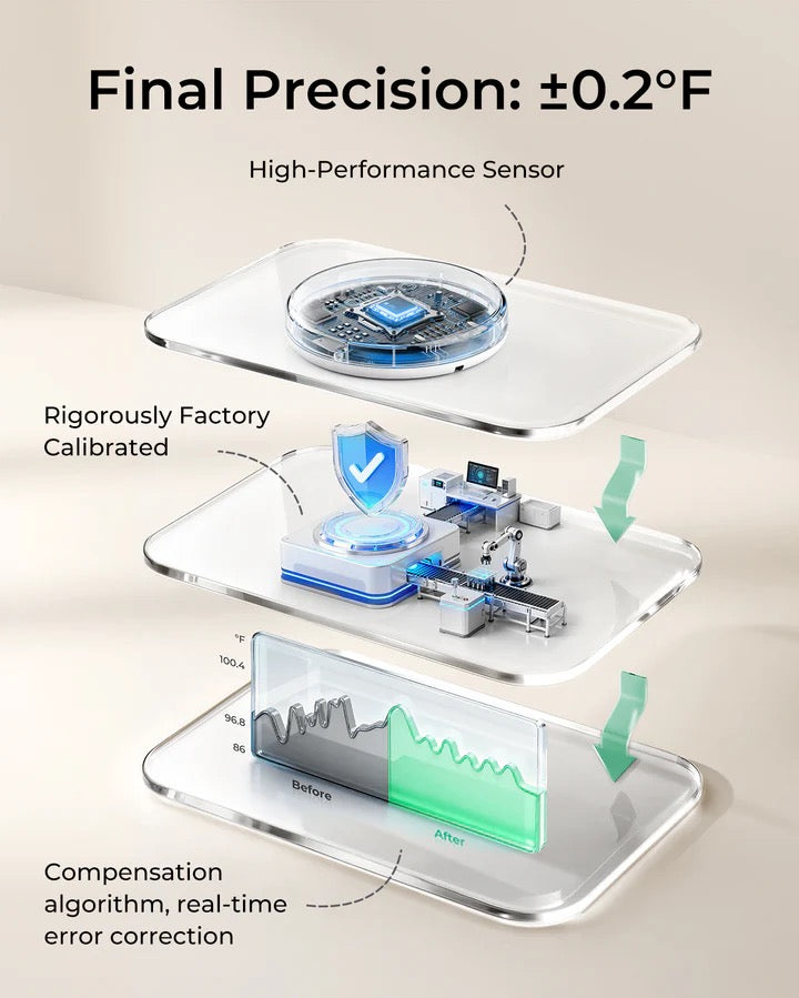 • 【مستشعر عالي الدقة ±0.2 درجة فهرنهايت ومراقبة موثوقة لدرجة الحرارة】 مزود بمستشعر مدمج عالي الأداء وخوارزمية تعويض، يوفر مقياس حرارة الأطفال القابل للارتداء هذا قراءات فورية بدقة ±0.2 درجة فهرنهايت. من خلال تتبع تغيرات درجة الحرارة، يساعدك هذا المقياس على تحديد احتياجات طفلك بدقة، سواء كان يحتاج إلى رعاية لطيفة أو عناية فائقة، مما يضمن مراقبة دقيقة لدرجة الحرارة ويوفر رؤى موثوقة لاتخاذ قرارات تربوية سليمة.