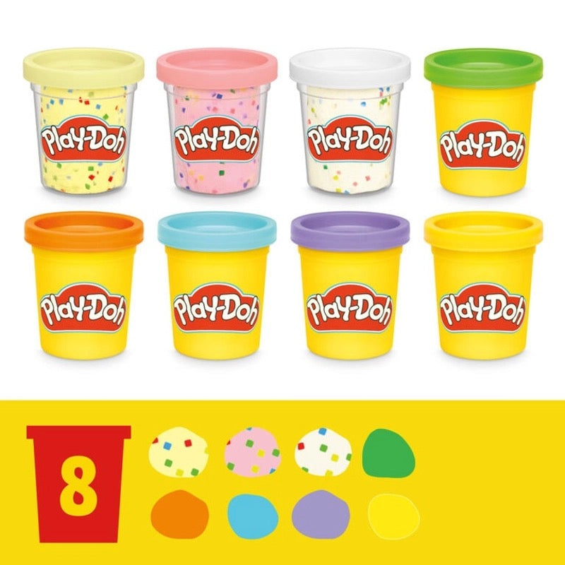 حان الوقت للعب لعبة المخبز مع 15 ملحقًا من Play-Doh وعرض كب كيك من 3 طبقات. ما عليك سوى تشكيل مجموعة متنوعة من الكب كيك الخيالي ثم تزيينها برشات ملونة وثلج خيالي. اجعلها أكثر احتفالية مع 3 علب من مركب Play-Doh Confetti و 5 ألوان صلبة. سجادة اللعب هي المكان المثالي للعب والحفاظ على إبداعاتهم بعيدًا عن الطاولة.