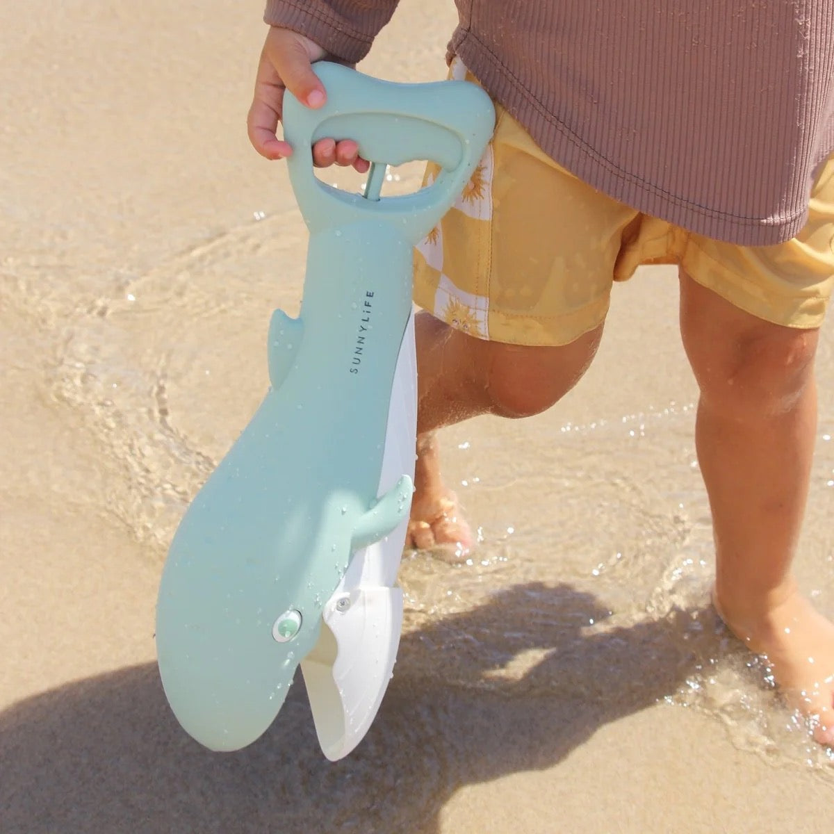 مثالية للأطفال من عمر 3 سنوات فما فوق، هذه المخالب الرملية على شكل حوت تحوّل وقت اللعب على الشاطئ إلى متعة لا تنتهي. تصميمها ذو الفم الكبير يلتقط الرمل بسهولة، بينما يتيح ذراع الذيل المريح للصغار فتحها وإغلاقها بكل يسر. صُممت لتدوم طويلاً وسهلة التنظيف، فهي تُشطف بسهولة وتجف بسرعة. الأبعاد: 36 سم طول × 9 سم عرض × 13 سم ارتفاع.