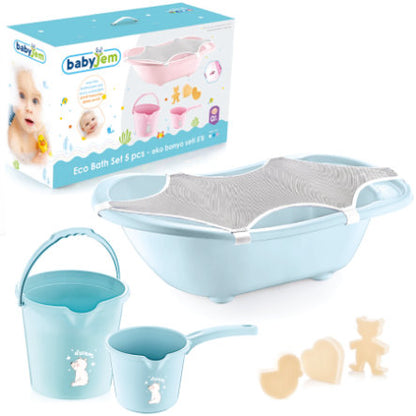Description: With the Babyjem Eco 5-Piece Bathroom Set, bathrooms are now more enjoyable! Suitable for mothers and babies. Our 5-piece baby bath set contains no harmful chemicals. You can easily use the Babyjem Bath Tub for washing your baby. With non-slip silicone feet, it does not slip and you can easily drain the water when you are finished with the fish-covered drain cover.