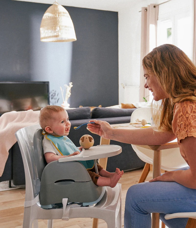 The sustainable baby booster seat for baby to discover their first meals while out and about