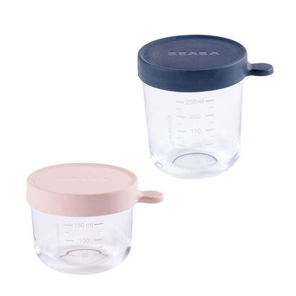 BEABA - Glass Portion Jars | Set of 2 | Pink/Dark Blue