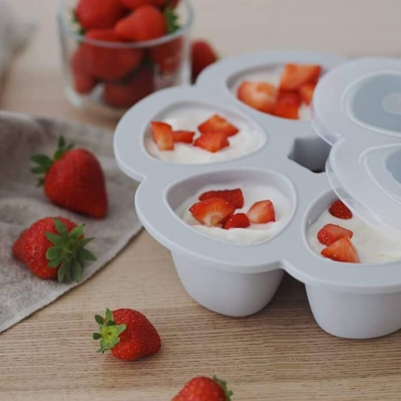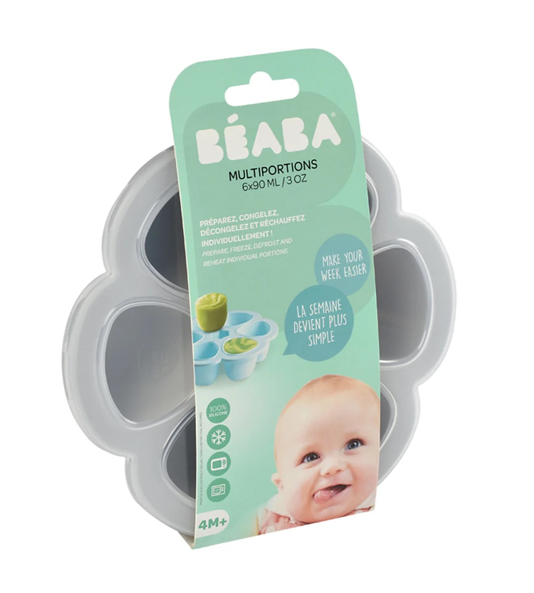 Béaba silicone baby food storage pots in light grey – Multiportion tray for storing up to 6 portions