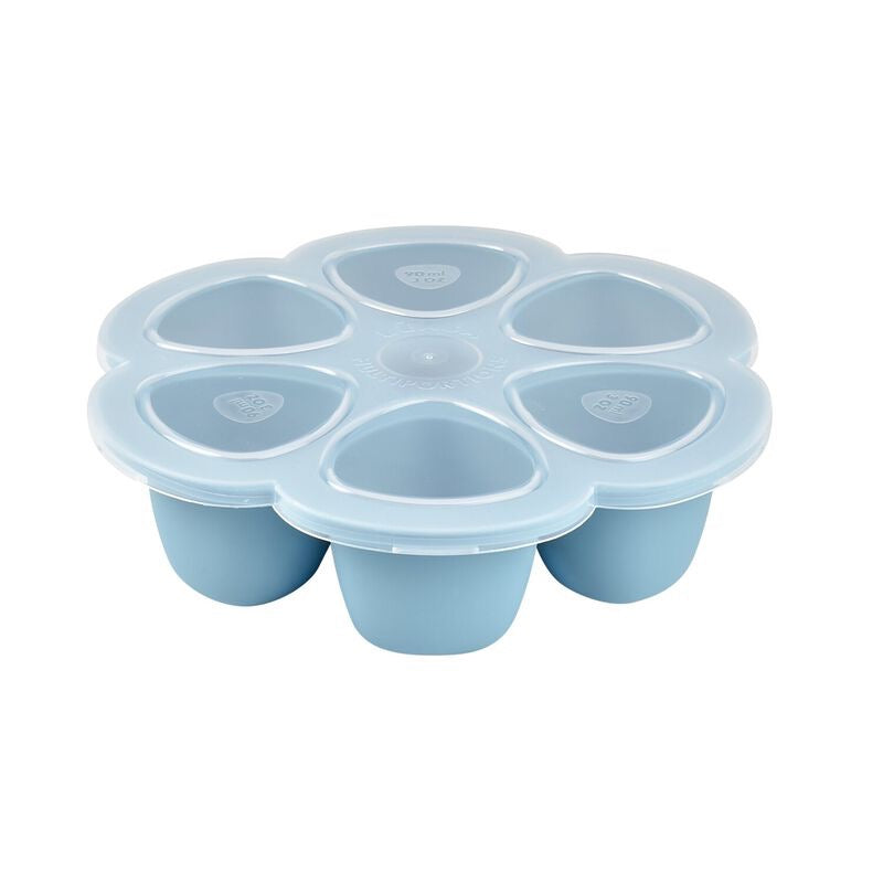 Béaba silicone baby food storage pots in light grey – Multiportion tray for storing up to 6 portions
