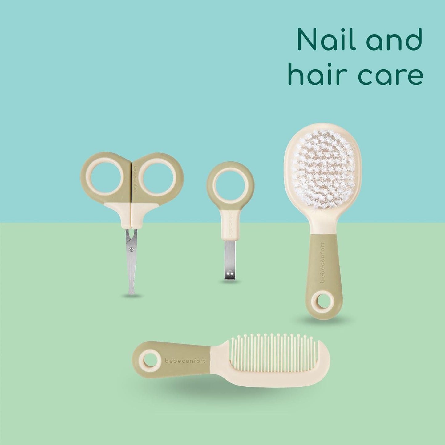 For everyday care of baby, discover Bebeconfort's baby toiletry set with all essential accessories from baby’s birth and through its early years. This practical case has clever storage facilities. With a high quality and compact case, this complete set is ideal for new parents. The case comes in a playful decor with modern colors and soft finishing. Useful at home or during travel. Can be cleaned with a sponge, this set is ideal for gift!