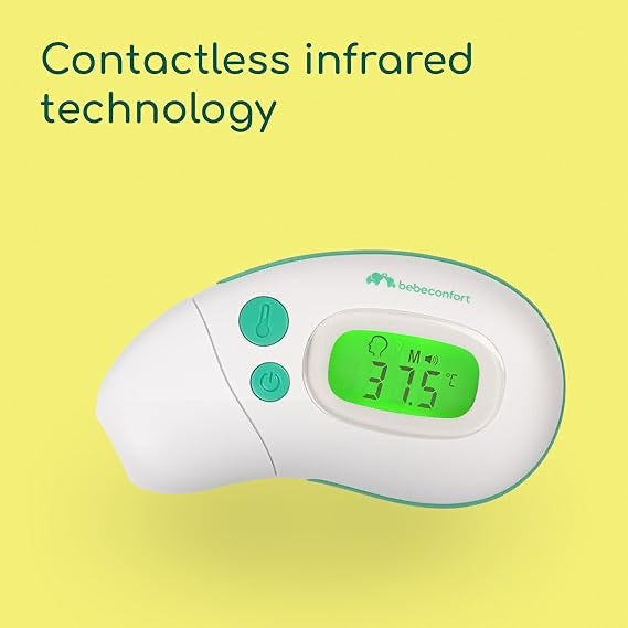4-IN-1 MULTIFUNCTIONAL THERMOMETER: uses infrared technology for contactless temperature measurements of your little one's body temperature, ambient room temperature, bath water or even food and milk