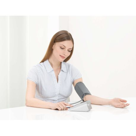 The blood pressure monitor with an elegant silver design has an exceptionally fast measuring time. The easy-to-read display clearly shows your blood pressure values.