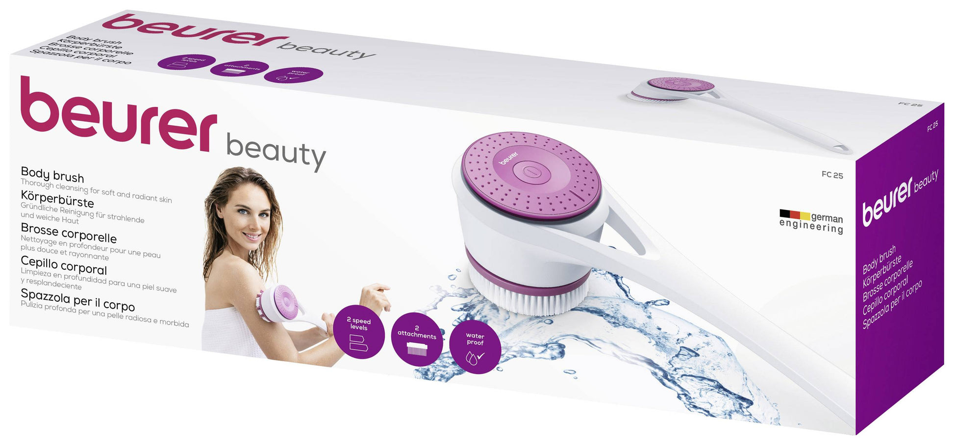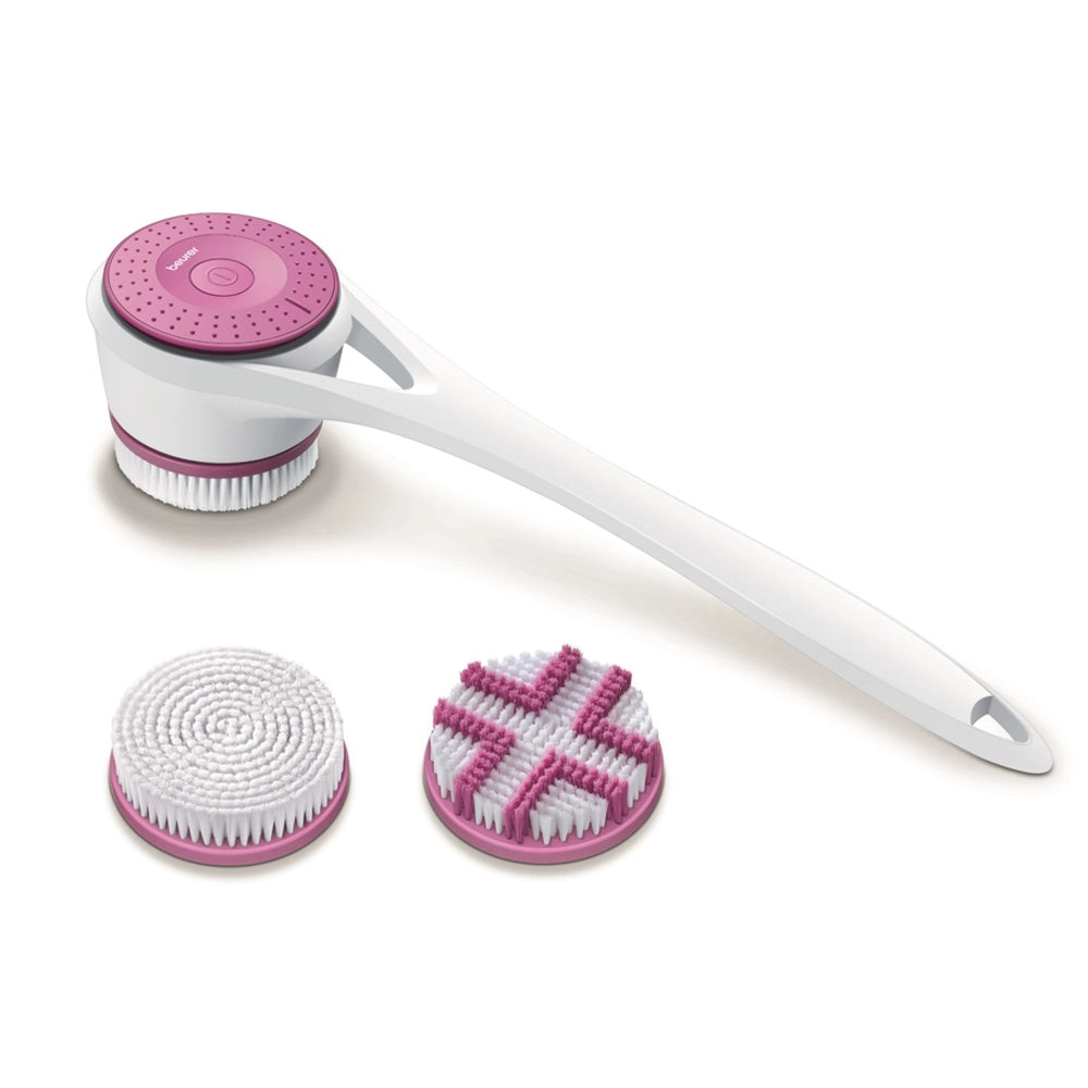 With hand grip for comfortable use also at the backWith two brush attachments for a thorough applicationWaterproof (IPX 7) - can be used in the shower and bathtubThorough cleaning for a noticeably radiant and soft skinWith two-stage rotationTwo speed levelsBrush head can be removed for easy cleaning2 brush attachments: For each skin type and for deep cleansing peelingBattery-powered