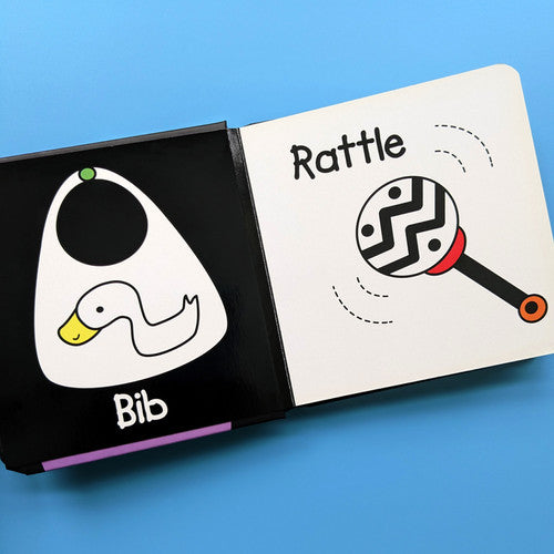 Introduce babies to their first words with this boldly illustrated black and white board book.