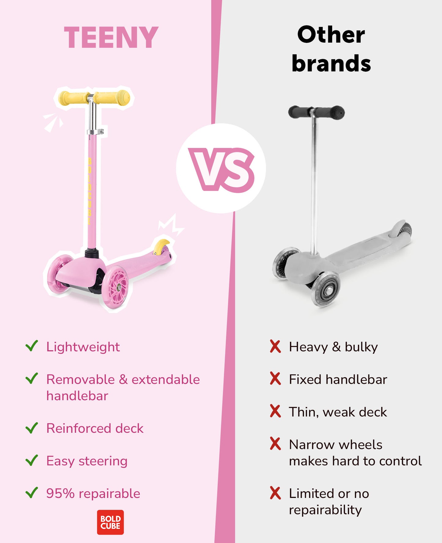 Bold Cube - Teeny Fold Three Wheel Scooter | Pink | 3-6 Years