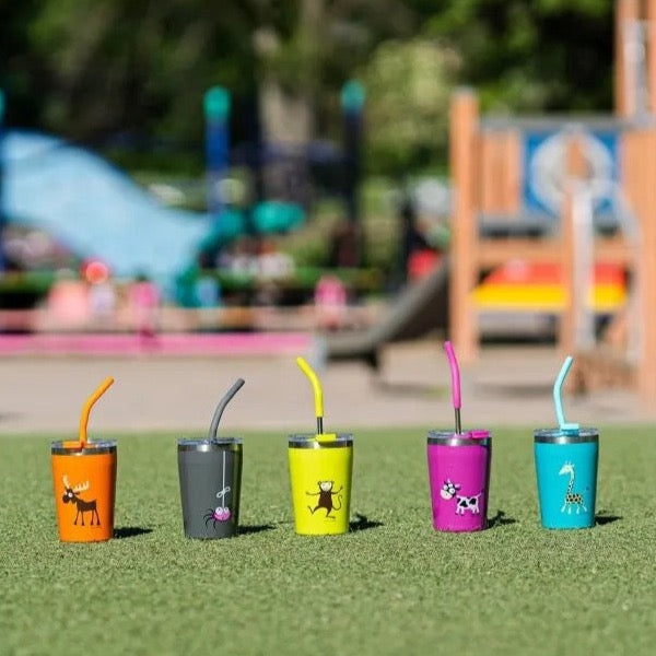 We have designed our on-the-go tumbler with kids in mind. All our kids products have bright colors and our much-loved animal illustrations made by the Swedish illustrator, Linn Eldin. It holds 0.25 L and has double walls with vacuum insulation. It is made of high-quality, food-grade 18/8 stainless steel and has an anti-slip pad at the bottom. TEMP Tumbler keeps your drinks icy cold or hot for hours. It comes with an easy-to-sip stainless steel straw with a flexible silicone tip
