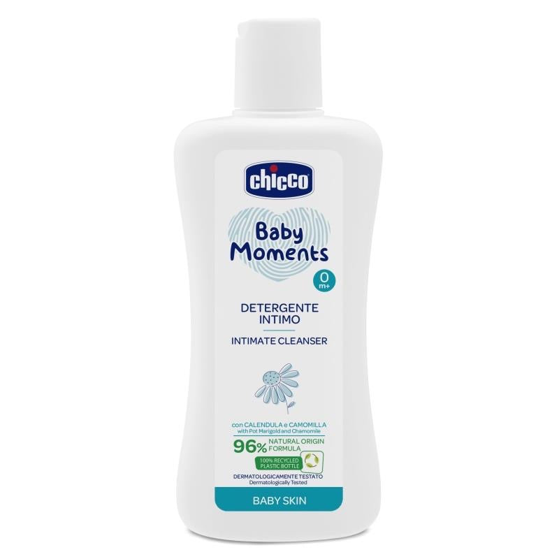 Formulated with 96% naturally derived ingredients, the Intimate Cleanser from the Chicco Baby Moments line is enriched with calendula and chamomile extract. Tested to respect the balance of the intimate mucosa, the Chicco Baby Moments intimate cleanser has an emollient and regenerating action on children's sensitive skin.
