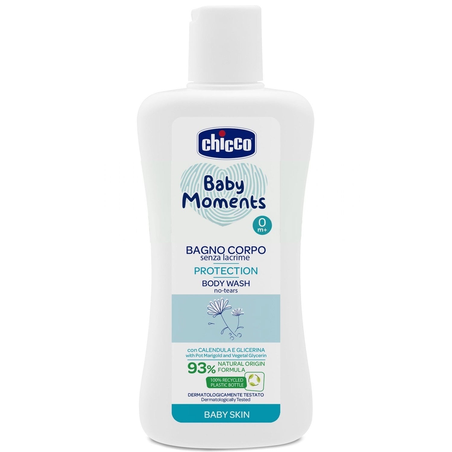 Formulated with 93% of ingredients of natural origin, Chicco Baby Moments Body Bath is enriched with emollient extract of calendula and vegetable glycerin to respect the hydrolipidic balance of the thin and delicate skin of babies. Dermatologist and ophthalmologist tested.