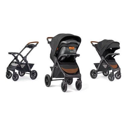 • Includes: Stroller and car seat combination, Infant car seat base, Detachable child tray, Parent tray and leatherette handle, Converts to lightweight frame stroller, Toddler stroller seat, Contoured, Reversible seat cushion, Foam-filled, treaded rubber tires