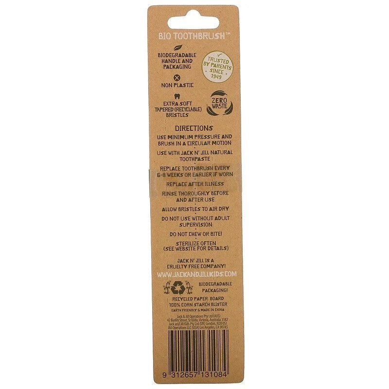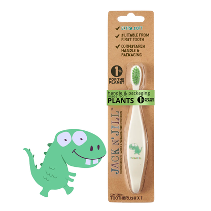 Jack N' Jill pioneered the use of corn starch for toothbrush handles and packaging in 2010. This plant derived material is compostable and its use has enabled us to avoid single-use plastics which continue to wreak havoc on the environment.