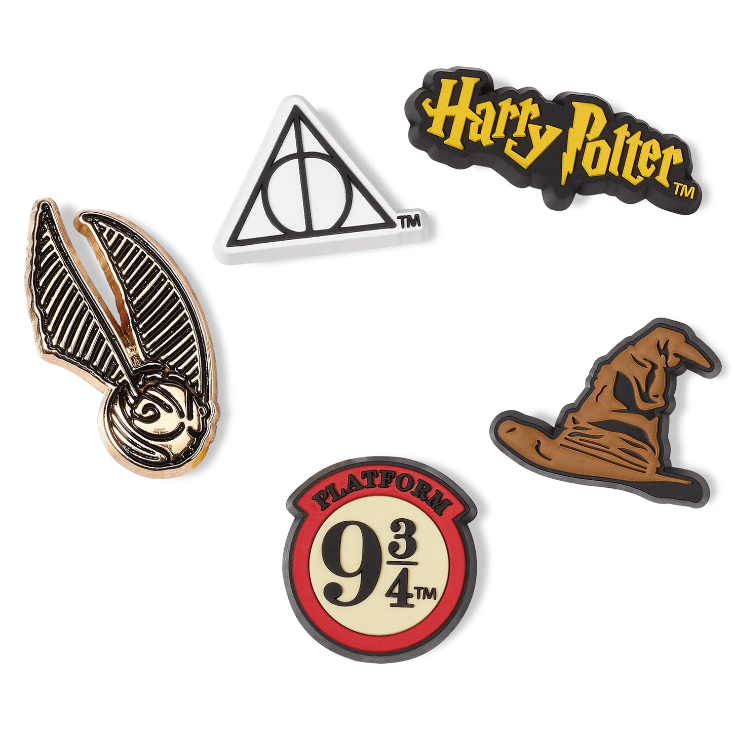 Pop some personality into your shoes with these Harry Potter Symbol 5 Pack Jibbitz™ charms. They’re the perfect addition to your favorite pairs of clogs, slides, and more.