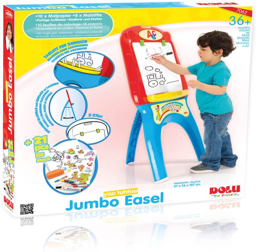 The jumbo easel set comes with a wipe-clean whiteboard and two holding clips it's ideal for painting pictures, making notes, leaving messages, playing hangman, practicing writing and drawing, and much more