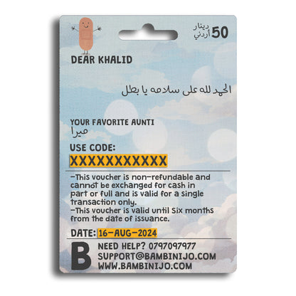 we’ve created a stunning collection of Electronic Gift Card Vouchers that combine creative artistry with heartfelt expression. These vouchers make the perfect gift from anywhere to Jordan, including Amman, offering a unique and thoughtful present for any occasion.
