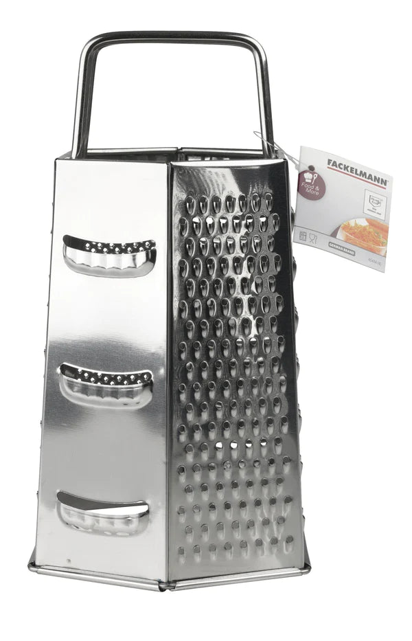 GRATER BY NIROSTA FROM THE GERMAN COMPANY FACKELMANN WITH SIX DIFFERENT SIDES. THANKS TO THE VARIETY OF EYELETS AND BLADES, PREPARING MEALS WILL BE SIMPLE AND PLEASANT.