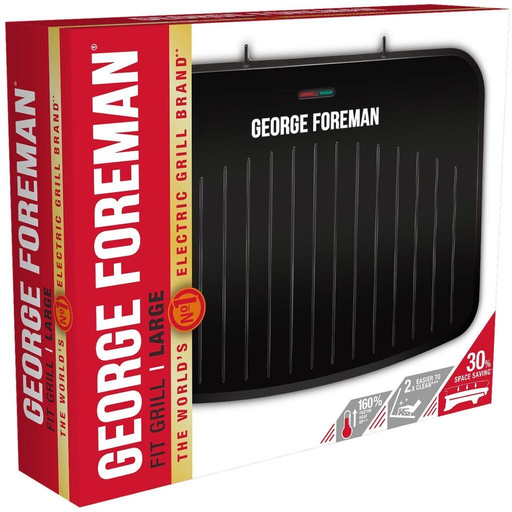 Grill, Large, Speedy Heat-Up, Vertically Store, from switch on to plate in under 6 minutes, Non-Stick Coating, Branded Inner Plate, Adjustable Rear Foot for Flat or Angled Grilling for Versatility, Clip-in Drip Tray, black Cooking up a feast of flavour for the whole family? Or maybe you just need a helping hand in the kitchen? Your meal time friend George Foreman has you covered. The Large Fit Grill’s new Smaller Footprint and Space Saving Design, perfectly fits into your life, meaning you can enjoy simpler storage without compromising on your cooking. In a Shiny Black with Matt Finishes, the Large Fit Grill makes a statement on your counter, and has the cooking sorted. And with a convenient Speedy Heat-Up, this versatile grill helps you eat well, more often.