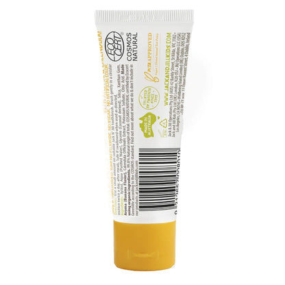 Jack N' Jill Kids Toothpastes are now Ecocert certified!With 40% xylitol, Jack N' Jill Toothpaste helps balance the pH in the mouth. xylitol has also been shown to reduce bacteria trapped in plaque whilst silica gently cleans teeth to help avoid the build-up of plaque. Calendula flower extract helps to naturally soothe gums. It is recommended that your child learns to brush their teeth after each meal to help develop good oral hygiene habits.
