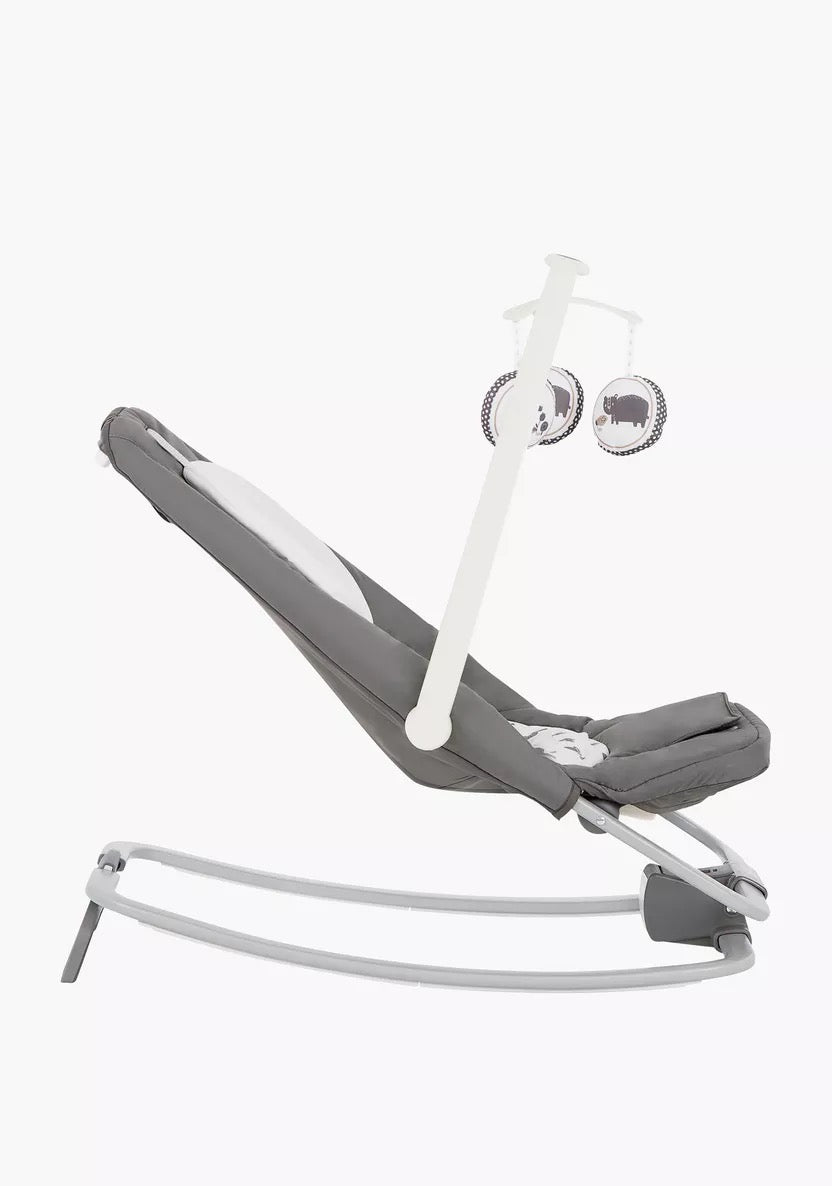 - Seat gently rocks and bounces with a push or when baby moves