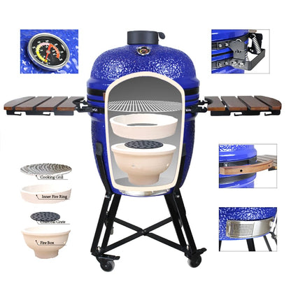 21" Kamado Ceramic Charcoal Barbecue Grill - Aoxun Multifunctional Ceramic Grill for BBQ/Roaster/Smoking