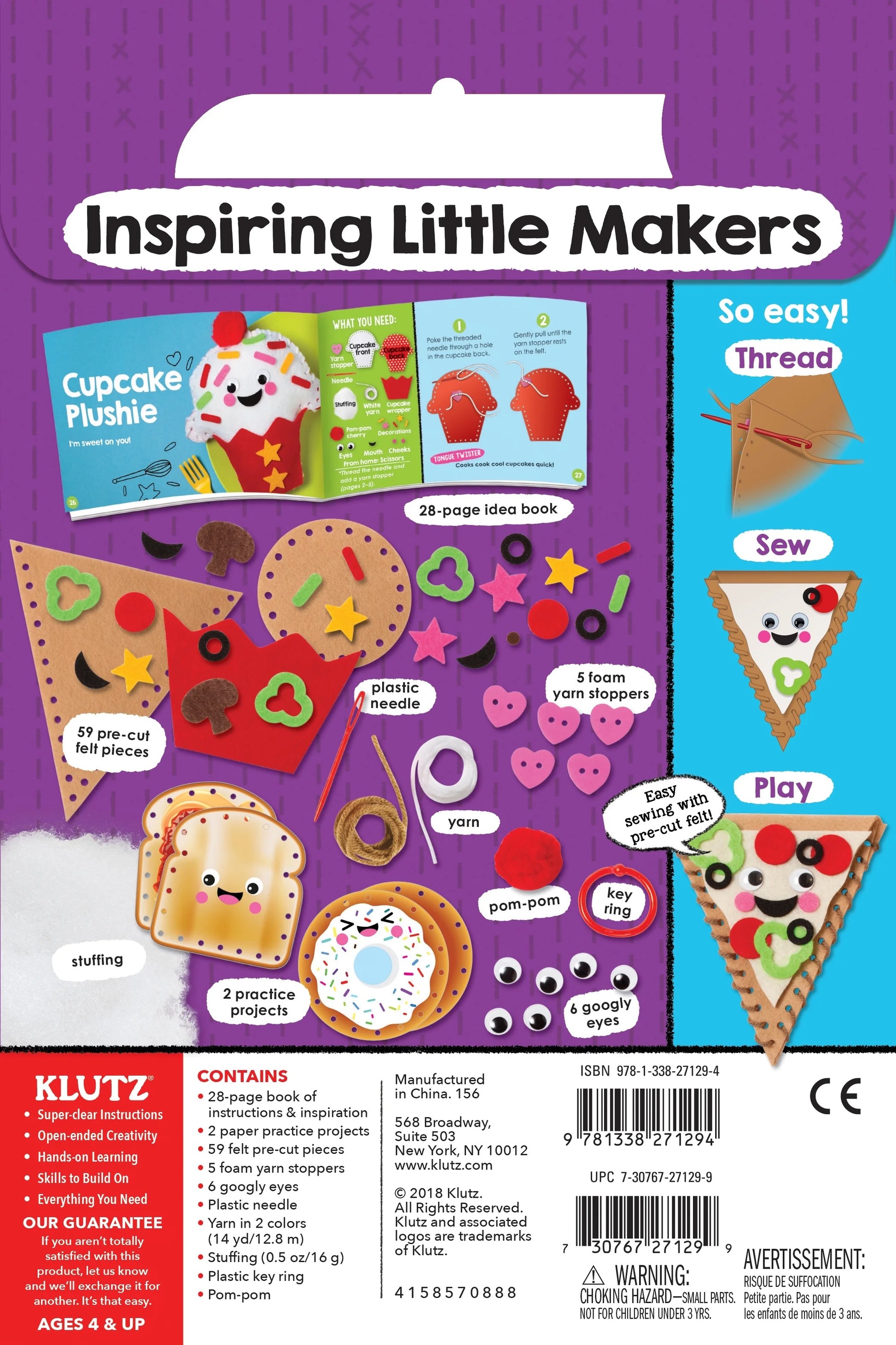 - Practice basic stitches with a donut and sandwich, then make a cupcake plushy, cookie keychain, and pizza pocket.
