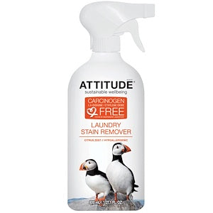 DIRECTIONS: Spray directly onto stain. Rub ATTITUDE laundry stain remover into fabric. Let penetrate 1 to 5 minutes depending upon the severity of the stain. Wash with laundry detergent. DO NOT LET DRY ON GARMENT.