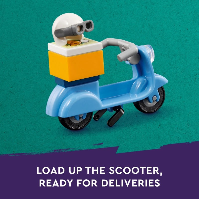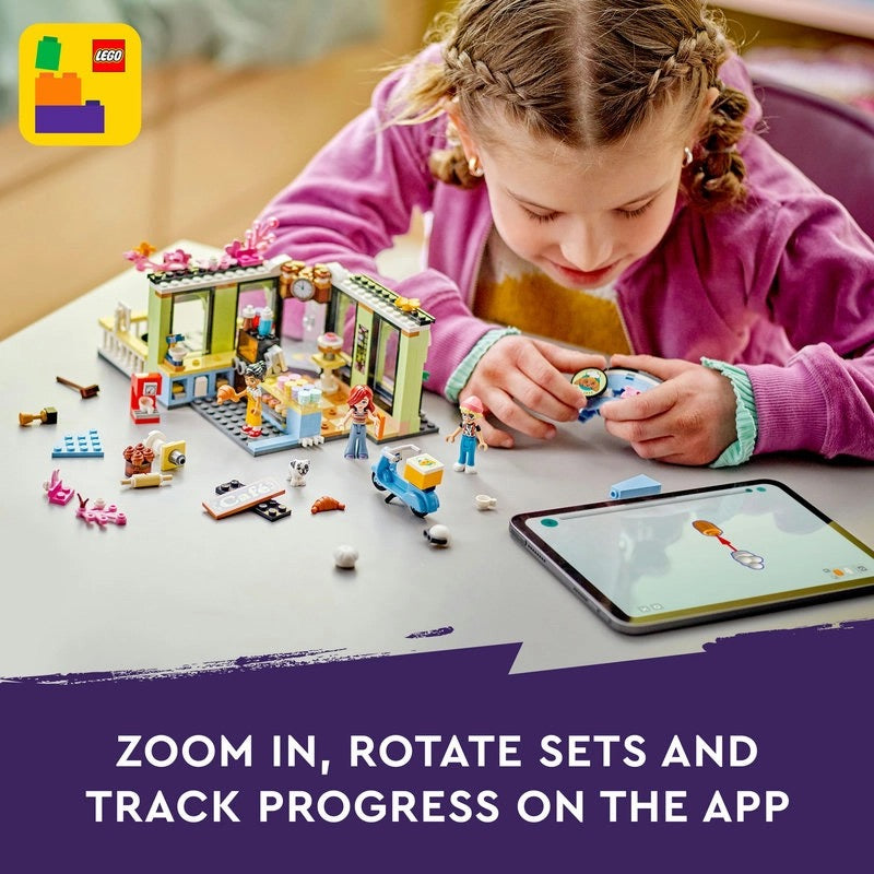 Take on a new building adventure with these inspirational LEGO® sets!Paisley and Olly are visiting their favorite café in Heartlake City. There’s an oven and a coffee machine in the kitchen, where Beatriz is busy creating tasty treats. Join in by making a cake and stacking the macarons onto the trays. The friends eat under the cherry blossom tree while pup Juno enjoys a doggy treat. The friends wave goodbye as Beatriz sets off on her scooter to make deliveries.This set is available in the LEGO® Builder app, where builders can zoom in and rotate models in 3D, as well as track and save progress.The set with a café measuring over 4.5 inches (11 cm) high, 5.5 inches (14 cm) wide and 7.5 inches (19 cm) deep.LEGO® sets are made of high quality materials under the best quality and safety standards.Launch date: Jun 01, 2024.-Includes: 426 pieces including, 3 minidolls, dog figure, accessories (macarons, a croissant, scooter, helmet, delivery box, dog bowl, trophy, a broom, oven, coffee machine), and building instructions.