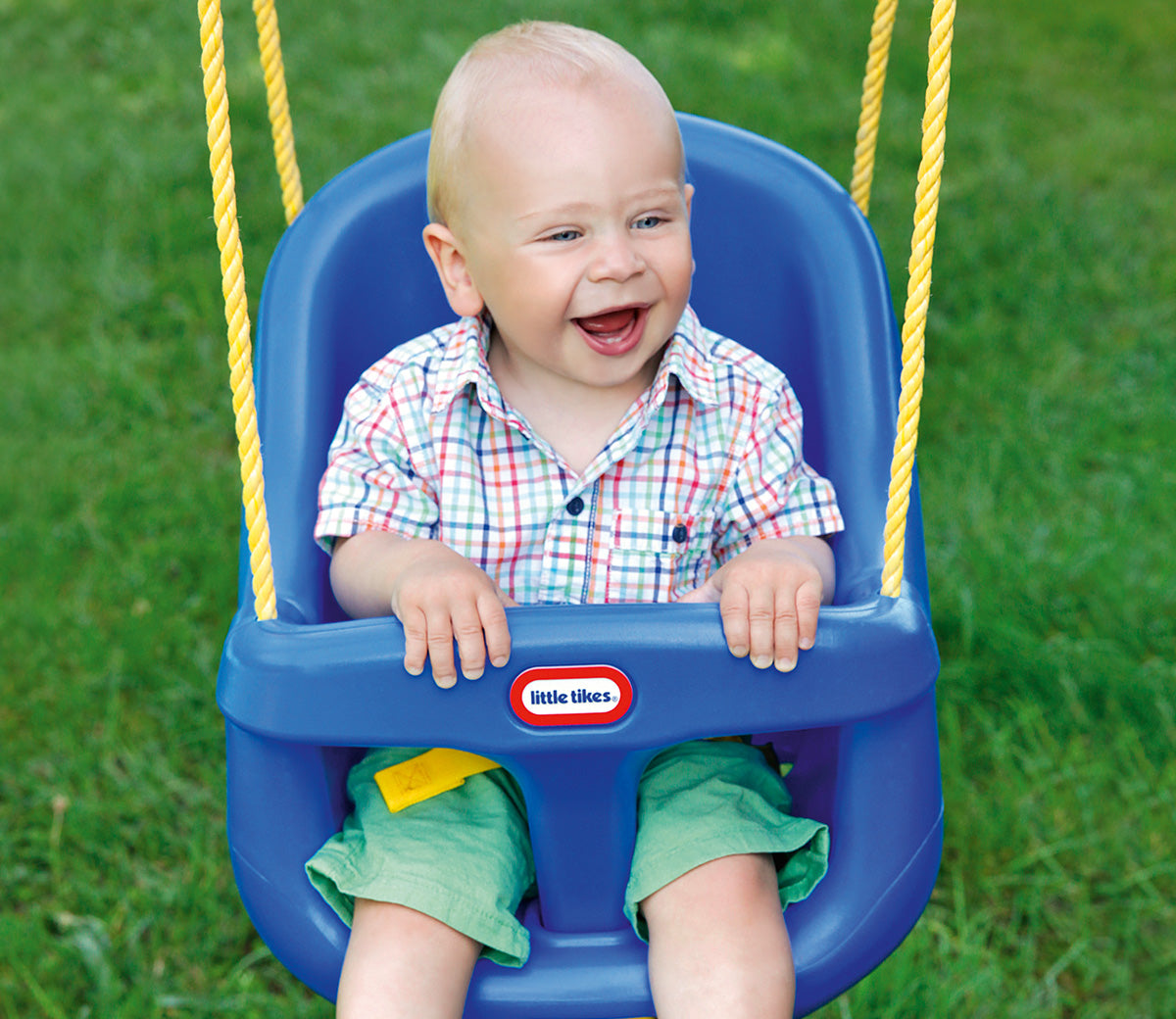 Little ones can enjoy the excitement of the park, while you remain confident their safety is put first. This high-backed swing seat, designed especially for babies of nine months and older, features an adjustable belt and tall sides for maximum comfort. This toddler outdoor swing is pre-assembled and made from heavy duty hardware and weather-resistant rope.