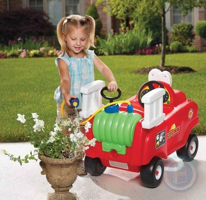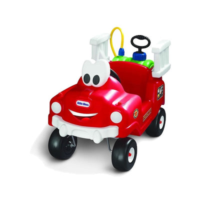 Little Tikes Spray & Rescue Fire Truck: * Includes fire truck and hose assembly * Little Tikes fire truck ride-on has a friendly, smiling face * Pressurized water tank and hose assembly really squirts water * Spray and rescue fire truck water tank is removable for easy filling * Little Tikes fire truck ride-on requires assembly