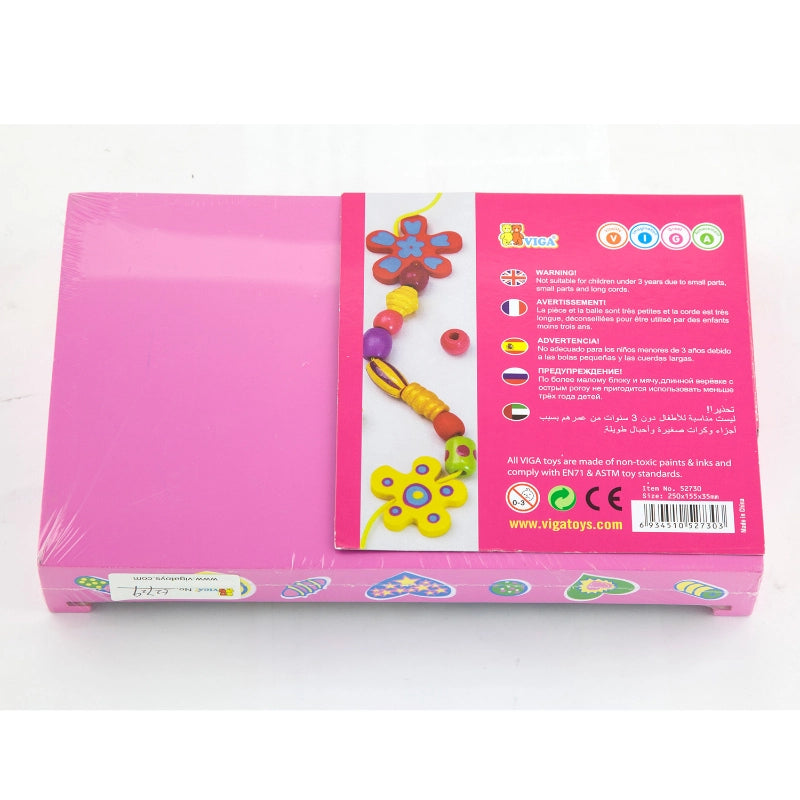 This wooden bead set is packed in a handy wooden box, allowing kids to easily store their beads.