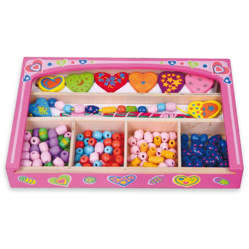 Each lovely wooden box contains 180 various wooden beads, different heart shapes plus 5 colorful laces.