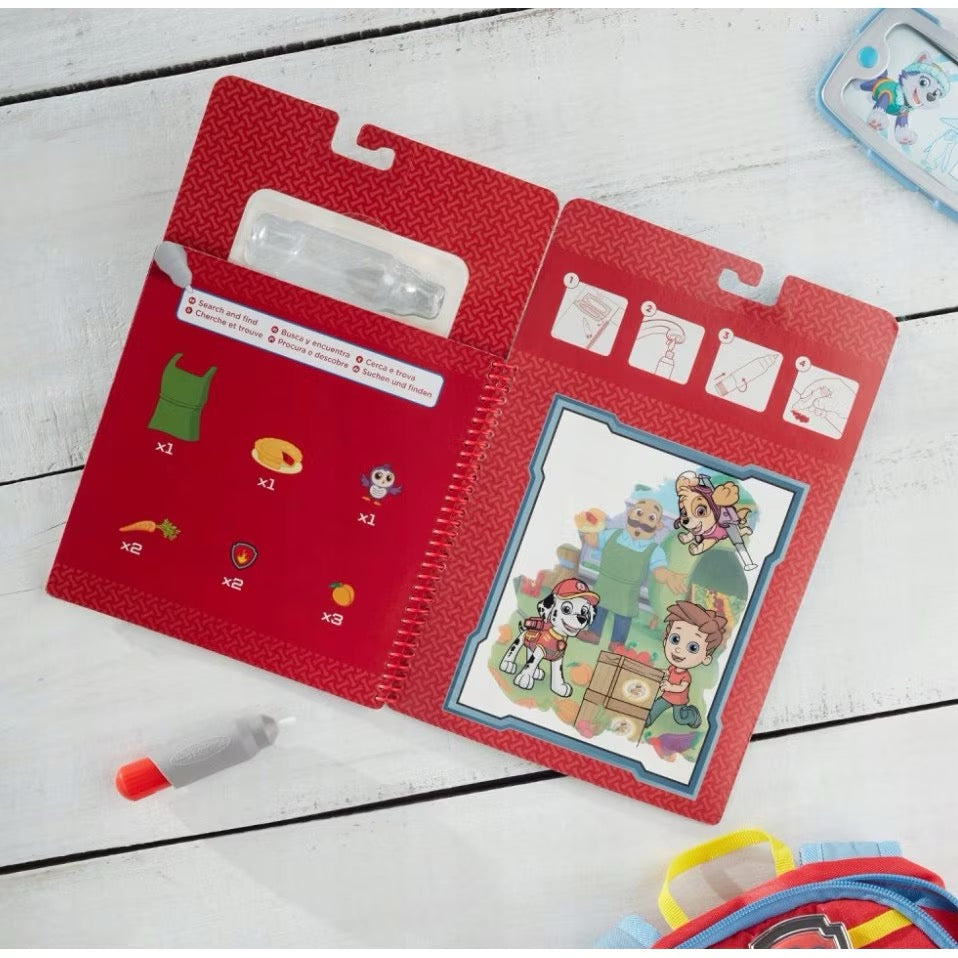 4 PAW Patrol-themed boards featuring the pup Marshall, and refillable water pen. Reusable pages are white when dry, reveal colors when wet; search and find activities on every page. Chunky-size water pen is easy to fill, easy to hold. Compact, spiral-bound format - great for travel.