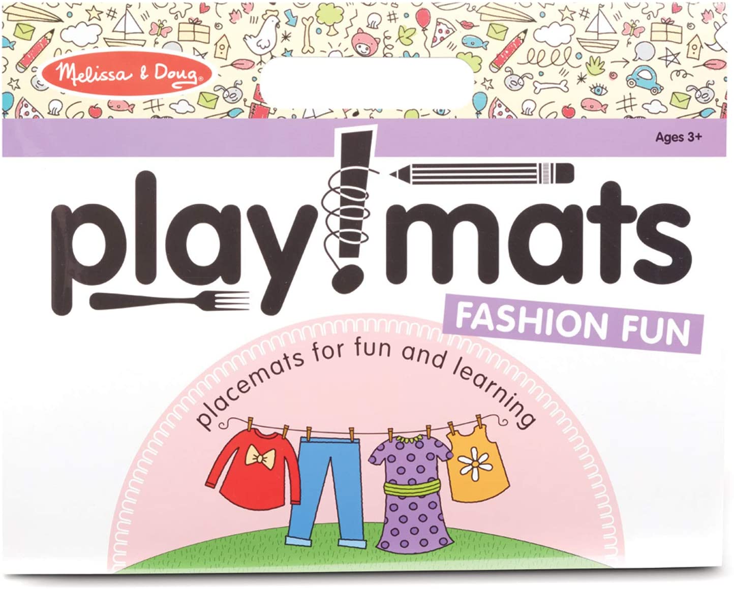 Fashion Fun Playmats coloring and activity pad lets kids bring their creative touch to the table! More than just paper placemats, the pad includes 24 pages of fashion-themed coloring, cutting, and creative activities that keep kids entertained and learning. Complete partial pictures, learn to draw, practice patterning and counting, find matching pictures, and much more! The pad has a built-in handle, so it's easy to bring to a restaurant, in the car, on the go, to the dinner table, or anywhere kids want. The high quality white bond sheets tear cleanly away from the pad and make perfect recyclable placemats.