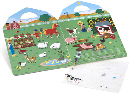 P Kids can build characters and tell stories with these fun stickers and scenes. Just layer the puffy stickers onto the double-sided background board of the barn or farm scenes, adding animals and tools. It's easy to lift, switch, layer, and rearrange it all to depict whatever farm tale a child can imagine! A built-in sticker collection--52 reusable puffy stickers in all--offers endless opportunities for kids to express their creativity and have lots of pretend-play fun, all while improving fine motor skills and communication.