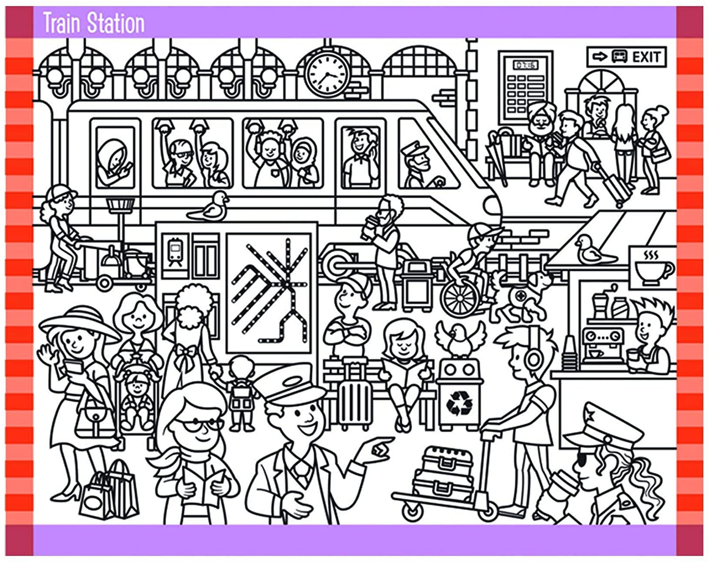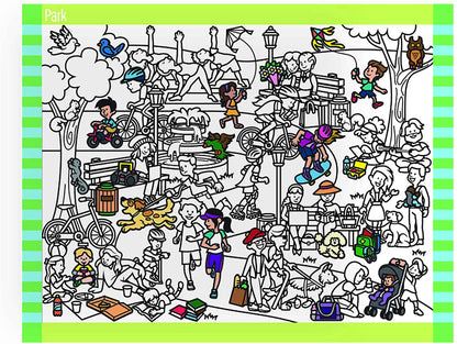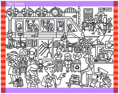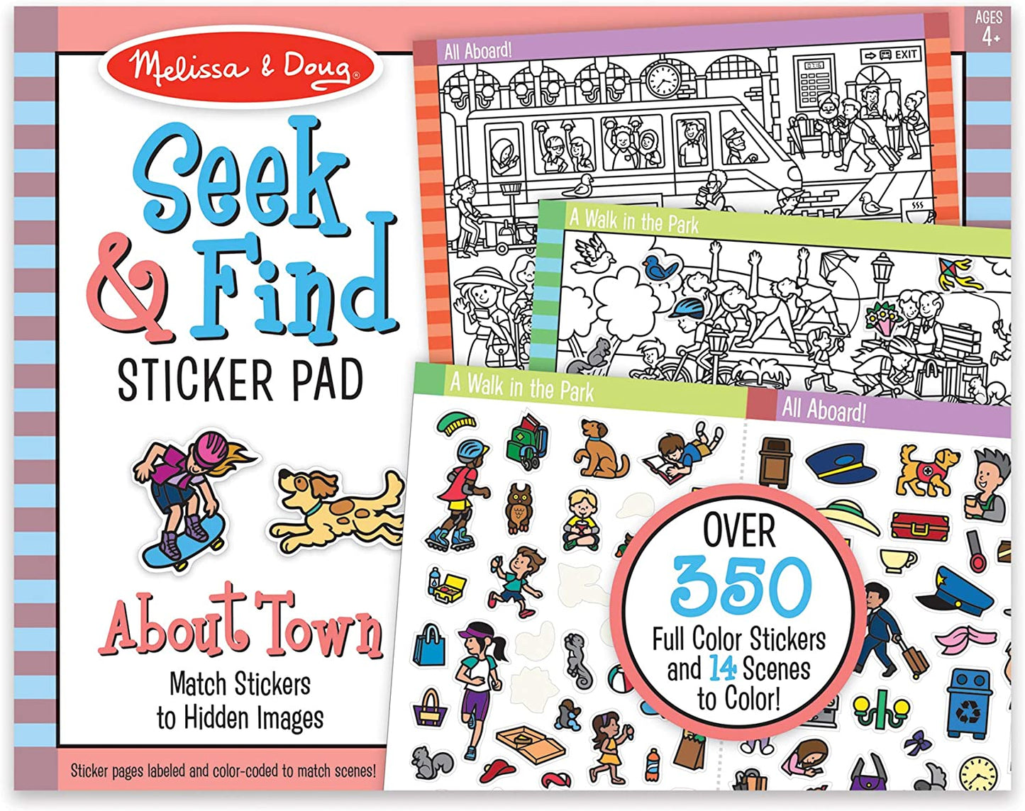 This fun pad is a seek-and-find game, a coloring pad, and a sticker pad all rolled into one! Match more than 400 full-color stickers to hidden objects on 14 town-themed pages, then color in the detailed scenes with pencils, markers, or crayons to create one-of-a-kind pictures. Sticker pages are color-coded and labeled to match scenes. The detail-rich scenes include a farmers market, hospital, highways, park, school, airport, amusement park, restaurant, mall, museum, café, construction site, bus station, and firehouse. Perforated edges make it easy to remove sticker pages to match to scenes.