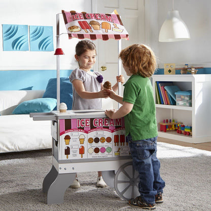 • Rolling, reversible ice cream and hot dog cart with sturdy wooden construction